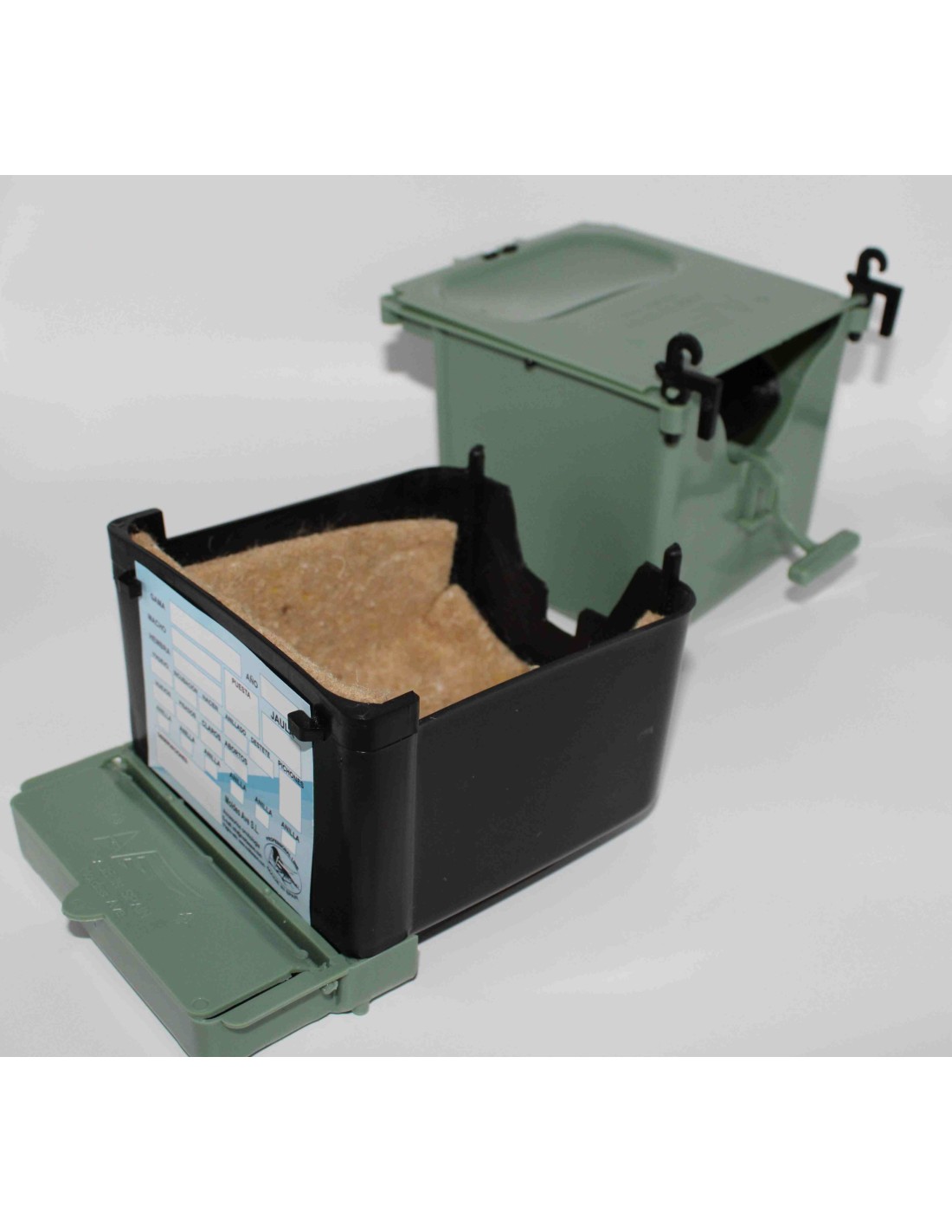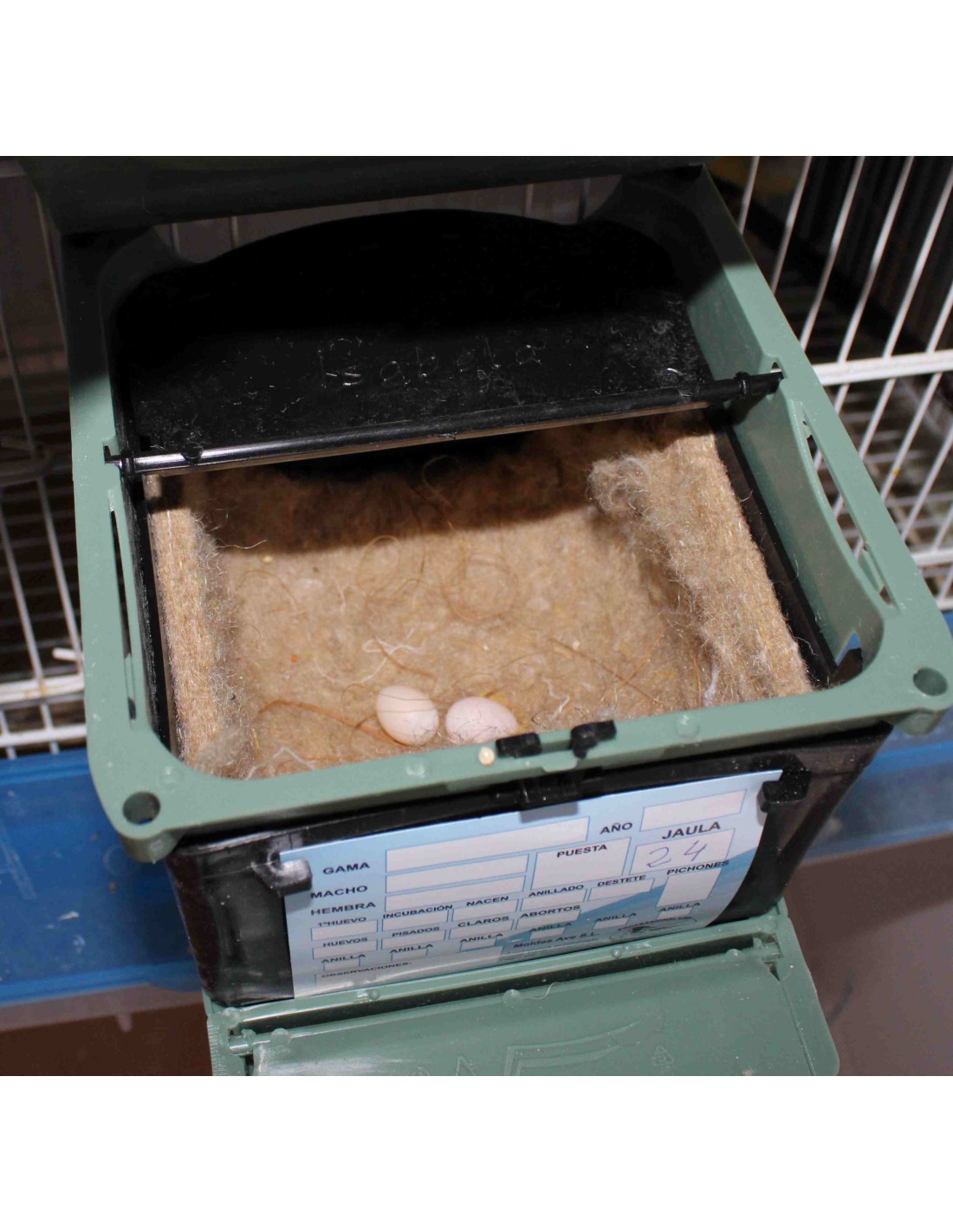 Incluye hueco para apartar huevos, tarjeta de cría por las ambas caras y 1 forro de yute.