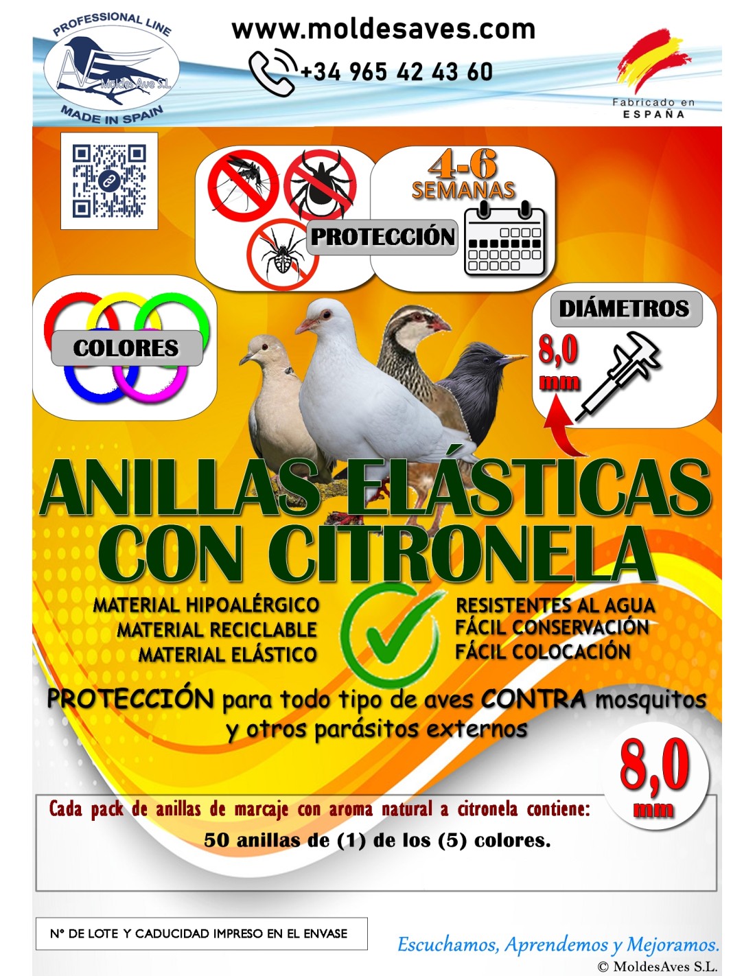 ANILLAS DE MARCAJE CON CITRONELA ANTIPARÁSITOS PARA PALOMOS 8 MM 50 UNIDADES MOLDES AVE