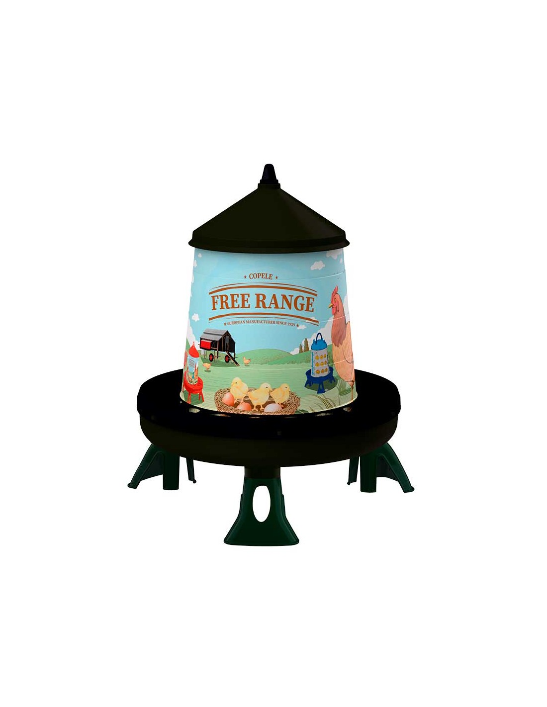 TOLVA DE PLÁSTICO RECICLADO PARA AVES FREE RANGE CON PATAS 4 KG COPELE