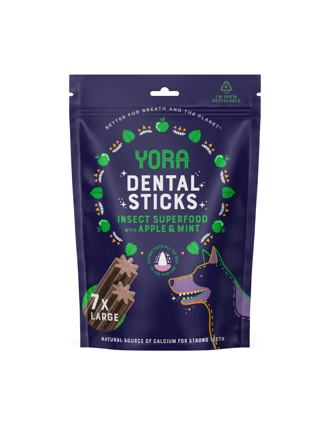 DENTAL BITES BARRITAS CON MANZANA Y MENTA PARA PERROS GRANDES YORA - 270 GR