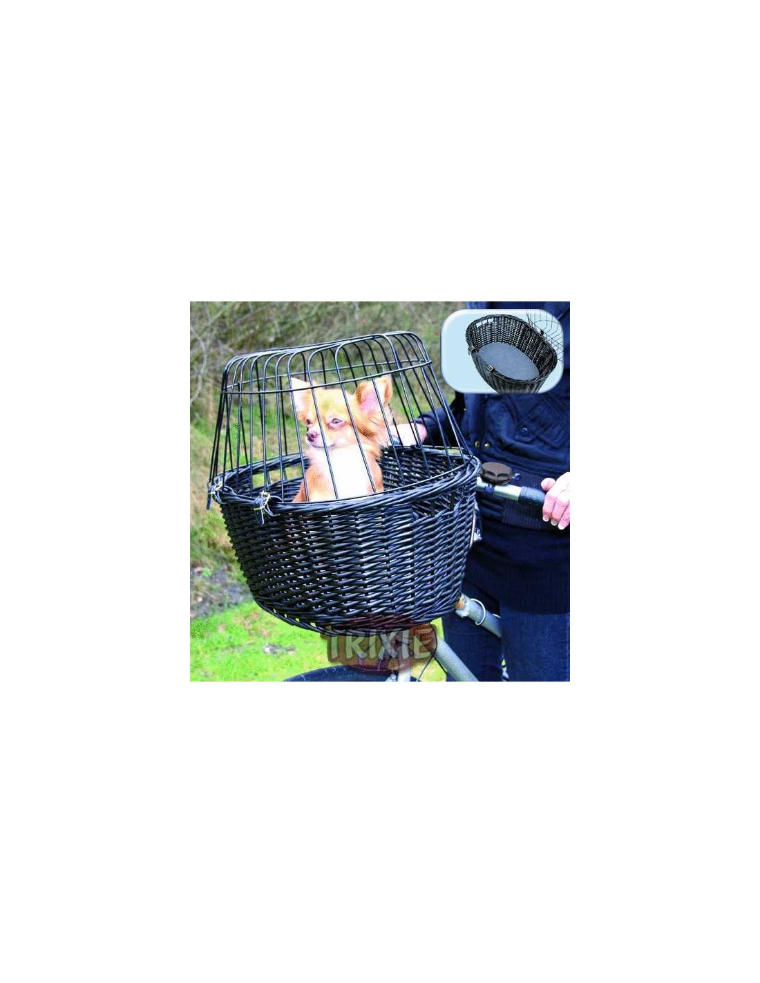 CESTA BICICLETAS MIMBRE OSCURO CON REJILLA TRIXIE - 50 X 41 X 35 CM