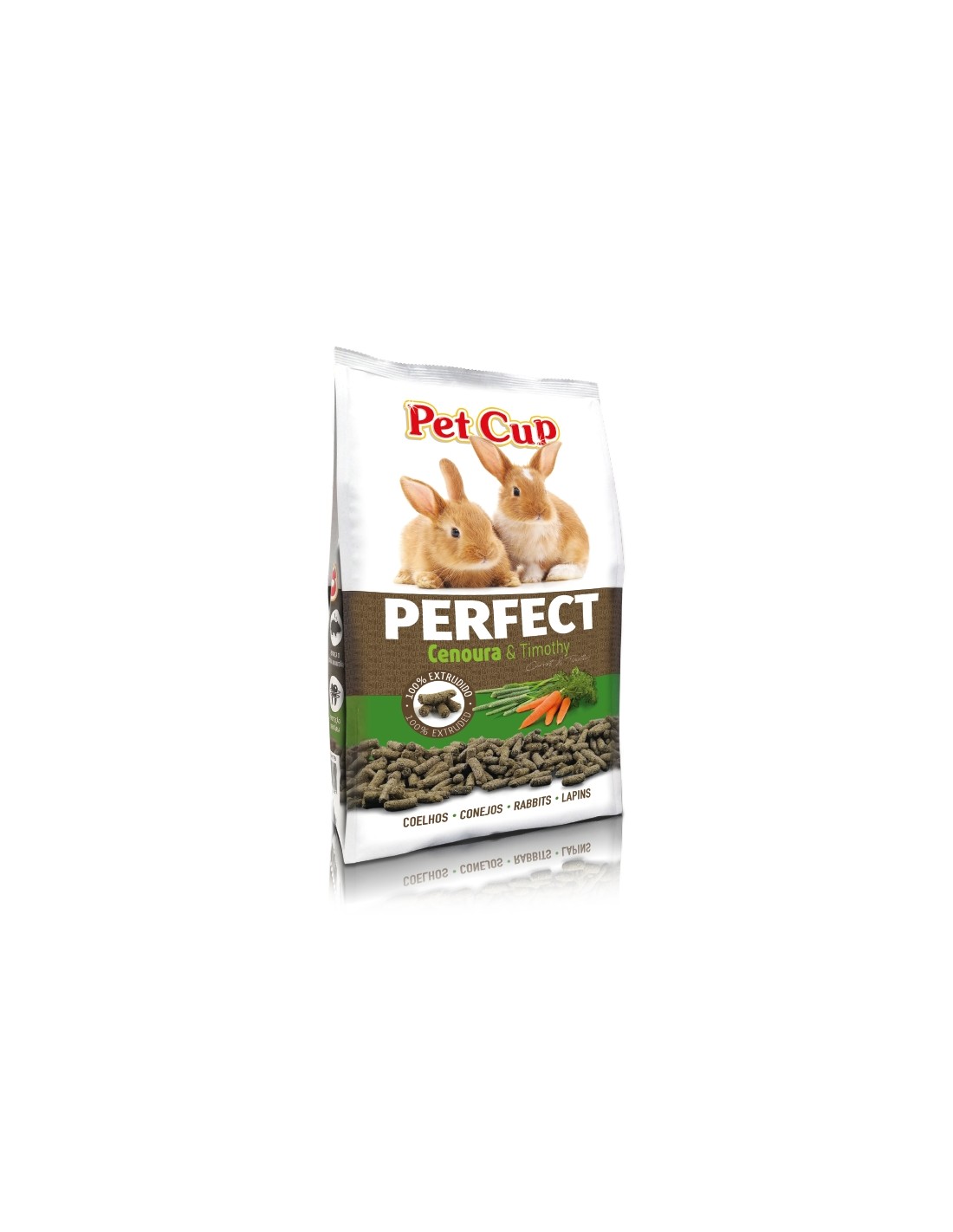 Composición: Heno de Timothy (o heno de fleo), torta de girasol, maiz, fibra de guisantes, almidón de maíz, zanahoria, aceite de girasol, arándanos, fosfato dicálcico, carbonato de calcio, cloruro de sodio y tapioca de mandioca.